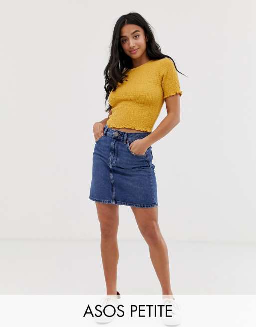 Asos Design Petite Jupe Taille Haute En Jean Authentique Bleu Moyen Delave Asos