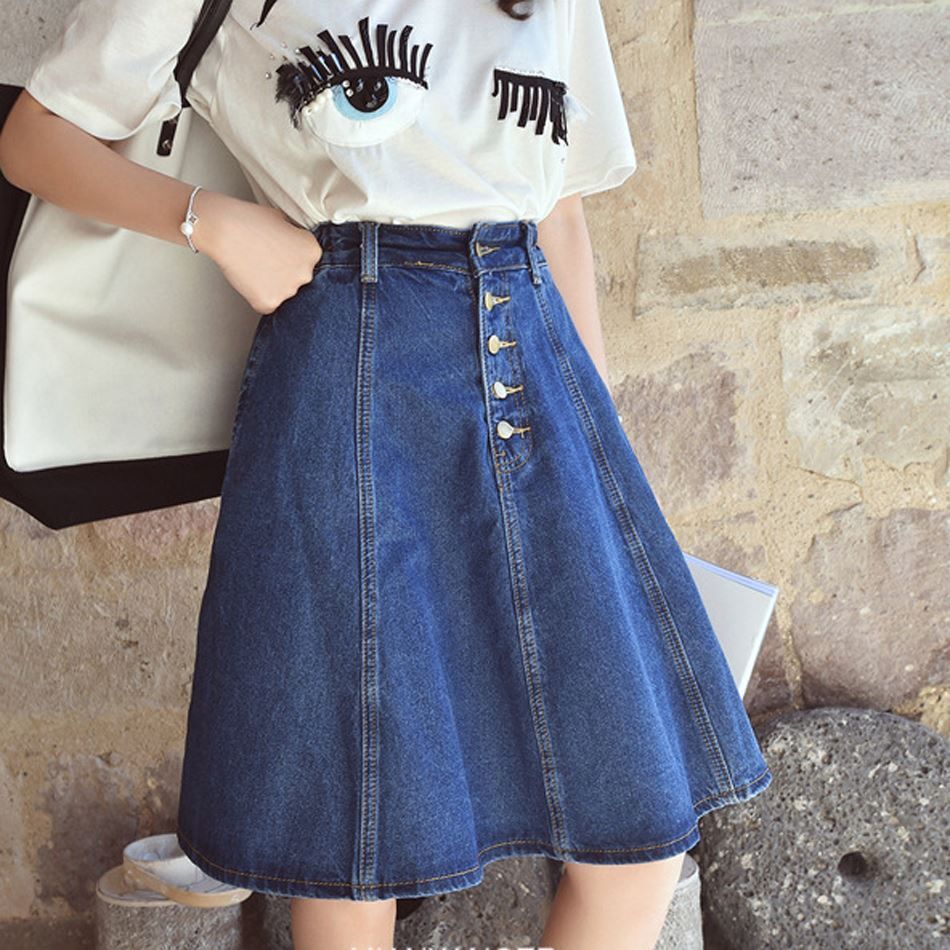 Acheter Jeans Automne Printemps Jupe De Longueur Genou Denim Jupe Taille Haute Jeans Jupes Jean Ecoliere Mignon Casual Taille Plus Usure A Chaud De 47 01 Du Akaya Dhgate Com