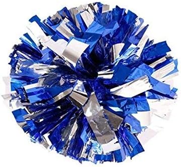 Amazon Com Puzine Pack Of 2 Cheerleading Metallic Foil Plastic Ring Pom Poms Cheerleading Poms Blue And Silver 80g Sports Outdoors