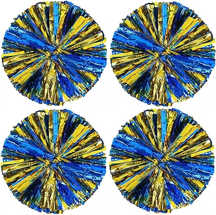Amazon Com Pack Of 4 Cheerleading Pom Poms Foil Plastic Metallic Cheerleader Pom Poms For Cheer Sport Kids Adults Team Spirit Cheering Blue Sports Outdoors
