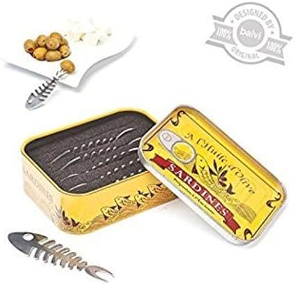 Balvi Set De 6 Pics Aperitif Sardines En Forme D Arete De Poisson Et Presente Dans Une Boite A Sardines A L Ancienne Les Pics Sont En Acier Inoxydable Amazon Fr Cuisine Maison