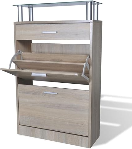 Vidaxl Meuble A Chaussures En Bois Avec Tiroir Et Plateau Aspect Chene Range Chaussures Amazon Fr Cuisine Maison