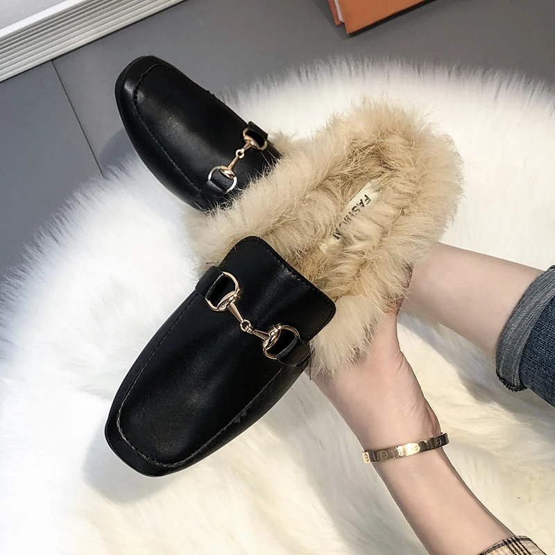 Zapatos De Mujer Carre Orteil Hiver Femmes Pantoufles Interieur En Cuir Metal Peluche Chaud Confortable Doux Femmes Chaussures Plates Chaussures Decontractees Kiosque Ma