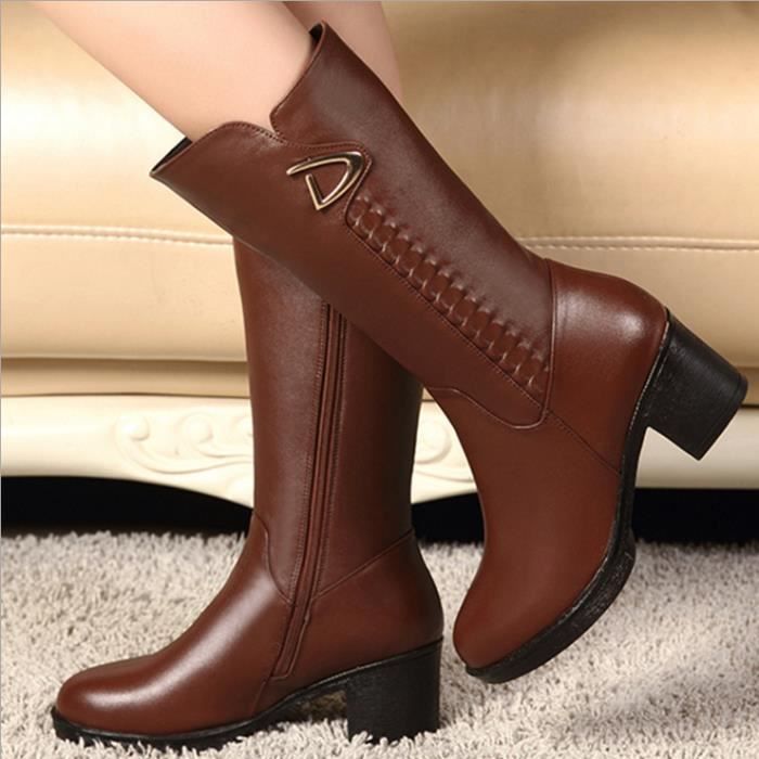 Fourrure De Laine A L Interieur Des Chaussures Chaudes Femmes Botte En Cuir De Luxe Marron Achat Vente Botte Soldes Sur Cdiscount Des Le Janvier Cdiscount