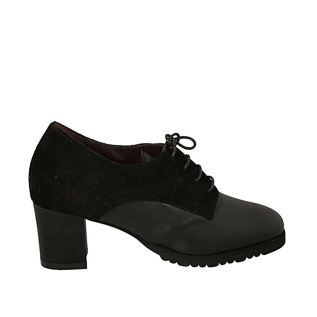 Chaussure A Lacets Pour Femmes En Cuir Et Daim Noir Avec Semelle Interieur Amovible Talon 5