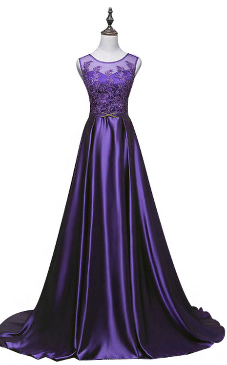 De Luxe Satin Robe De Soiree La Mariee Banquet Elegant Violet Dentelle Longueur Longue Robe De B On Luulla