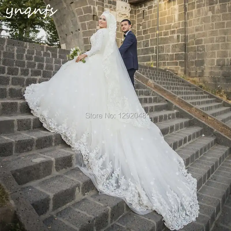 Ynqnfs Mw27 Robe De Mariee Princesse De Luxe Dubai 1m Long Tail Long Sleeve Muslim Wedding Dress Ball Gown Bridesmaid Bridesmaid Dresses Aliexpress
