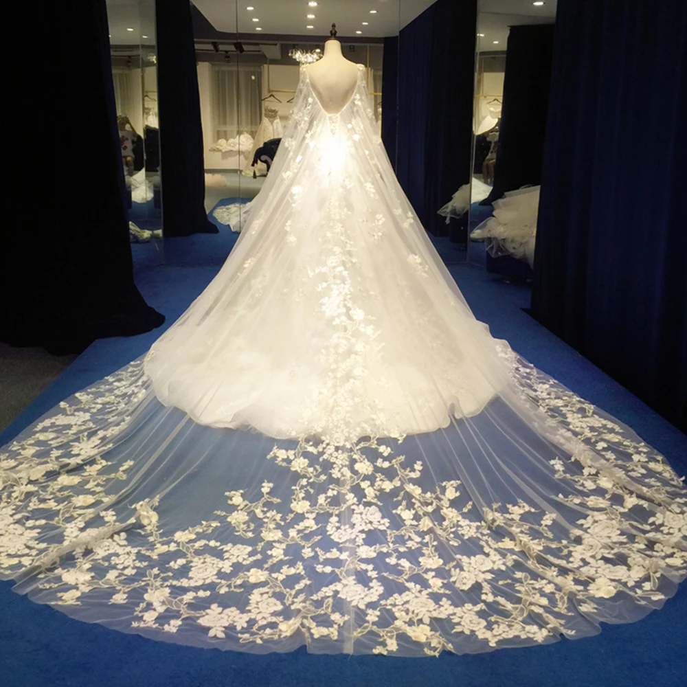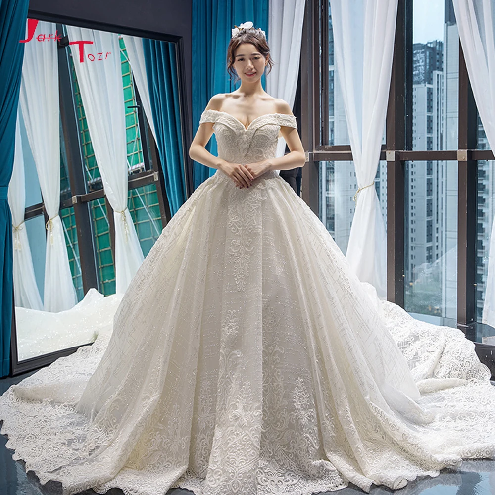 Super Promo Robe De Mariee Princesse De Luxe Off Shoulder Long Sleeve Lace Applique Ball Gown Wedding Dress August