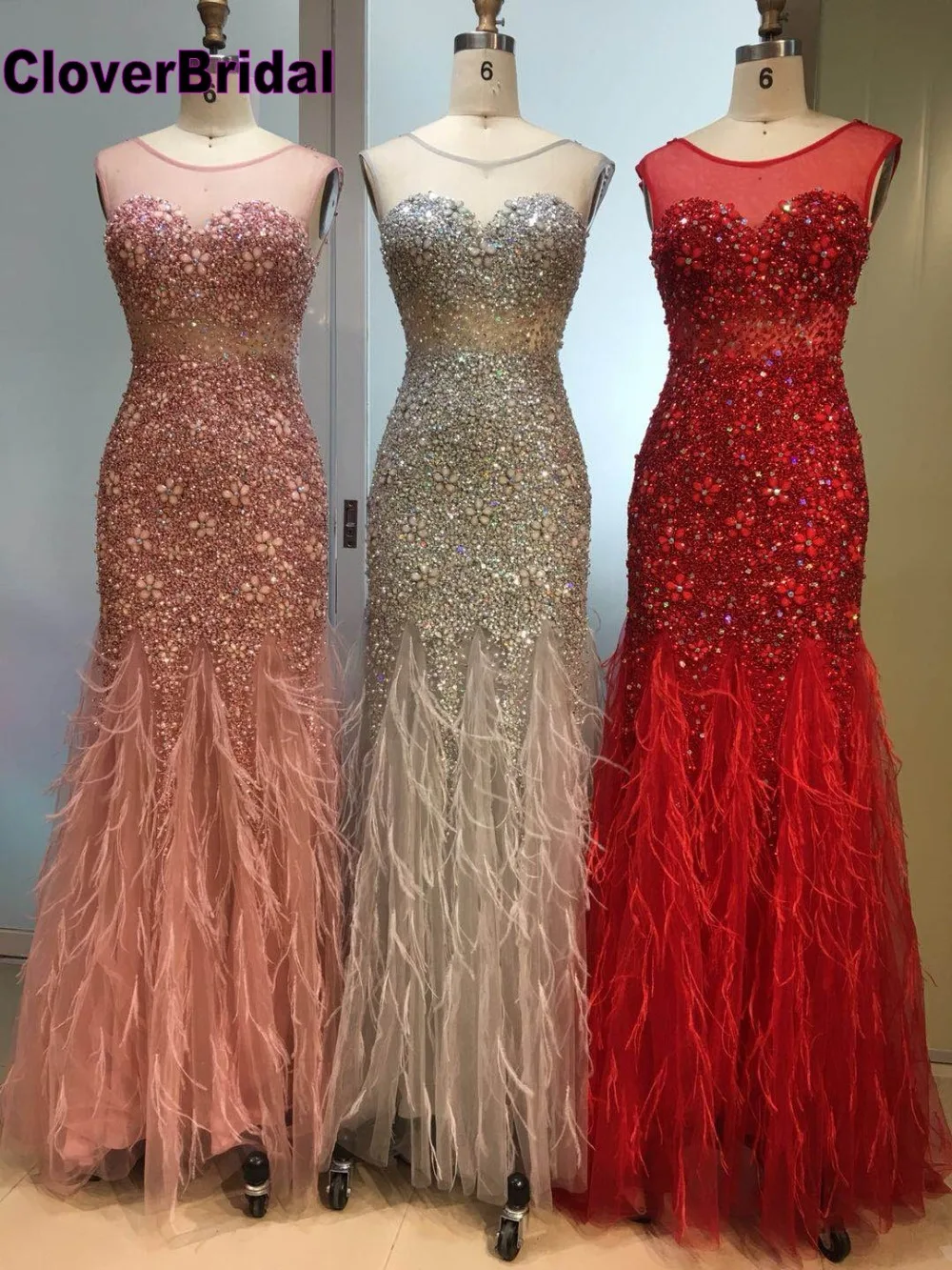 Ch3esierj0an Vente Cloverbridal 18 Derniere Conception De Luxe Eblouissant Sirene Pierres Plumes Robes Soiree Longue Robe Festa Longo Pas Cher Prix