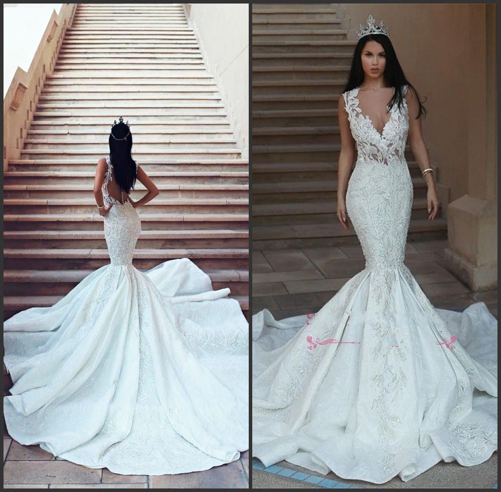 Illusion V Neck Organza Long Train Sexy Open Back Mermaid Wedding Dress Robe De Mariee Princesse De Luxe Mermaid Lace Dress Sweetheart Mermaid Wedding Dress From Everlastinglovedress 216 08 Dhgate Com