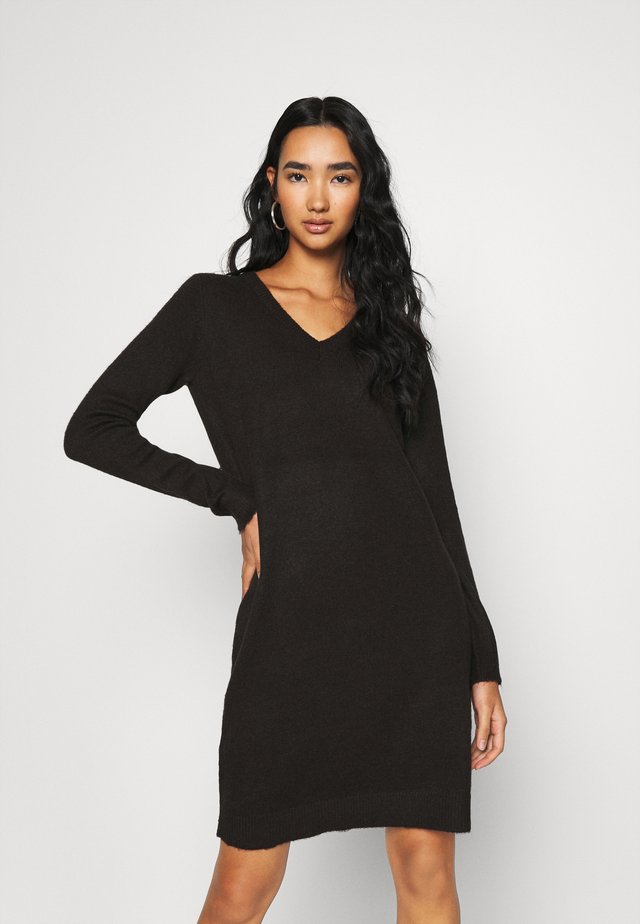 Robe Pull Grande Taille Pour Femme En Maille Avec Laine Mi Longue Noire