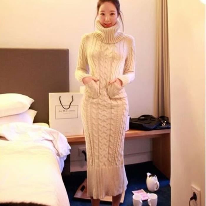 Femmes Hiver Pull Robe Nouvelle Col Roule De Mode Robe Longue Pull Conception De Poche Epaissir A Tricoter Robe Pull Blanc Achat Vente Robe Soldes Sur Cdiscount Des Le Janvier Cdiscount