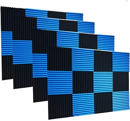48 Pieces De Mousse Acoustique Pour Studio Panneaux Muraux De 2 5 X 30 5 X 30 5 Cm 1 X 12 X 12 Bleu Noir Amazon Fr Instruments De Musique