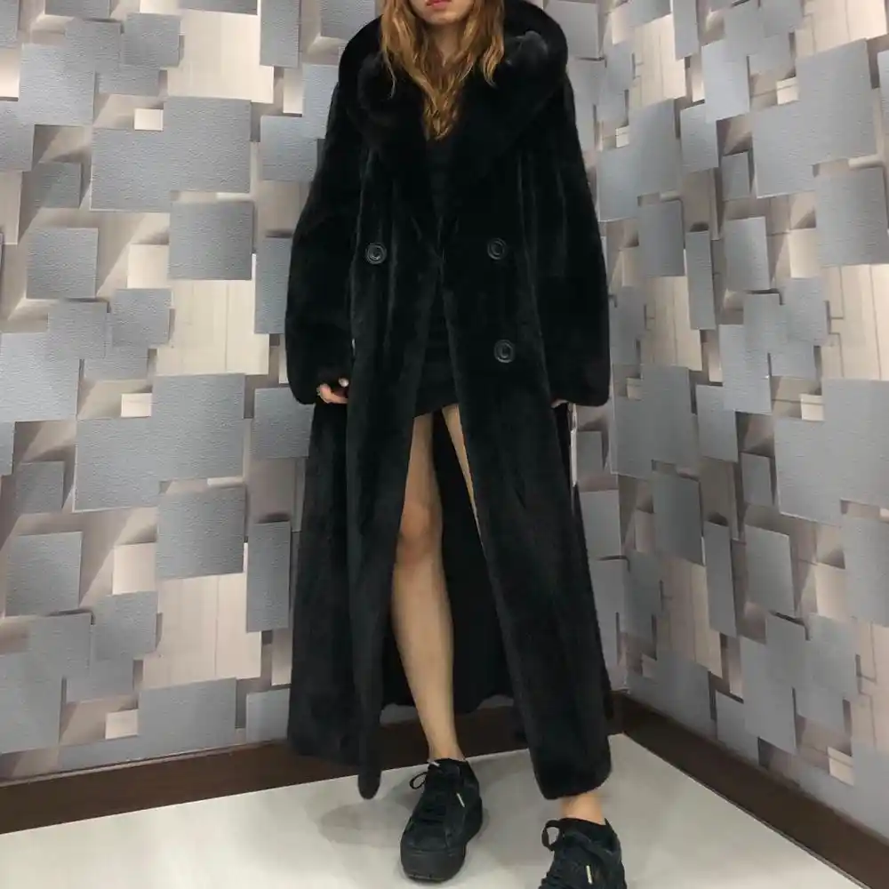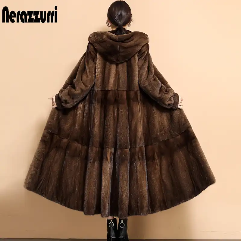 Nerazzurri Long Reel Vison Manteau De Fourrure Danemark Avec Capuche A Manches Longues Grande Taille Vison Manteaux Femmes Pleine Peau Epais Entier Vison Vestes Aliexpress