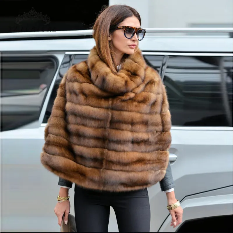 Veste Femme Bat Fourrure Tricote Vison Veste Cap Manche Chauve Souris