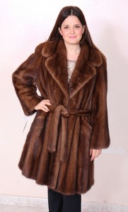 Manteau De Vison Marron Avec Ceinture Integree