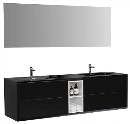 Meuble De Salle De Bain Flora 1900 Noir Mat Avec Niche De Rangement En Blanc Lys Amazon Fr Bricolage