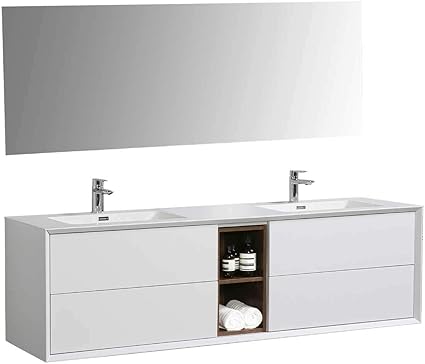 Meuble De Salle De Bain Freya 1900 En Blanc Brillant Tiroirs Avec Eclairage Led Tona For Only Productprice Von Shopname