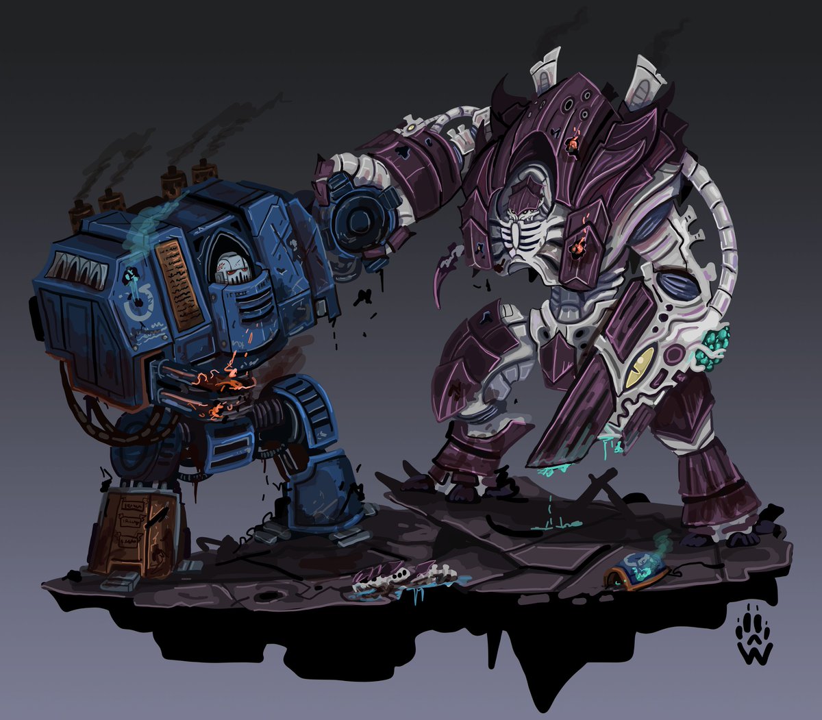Wolfdawg Art Venerable Dreadnought Vs A Mimictor Prime Warhammer40k Fanart Conceptart Tyranid