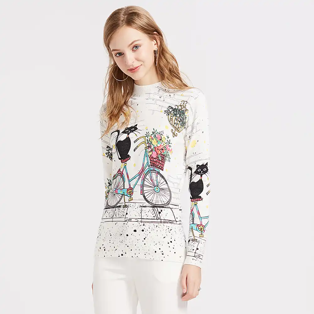 Sweater For Women Elegant Harajuku Cartoon Cat Bicycle Flower Turtlneck Sweaters And Pullovers Tricot Pull Femme Jersey Pullovers Aliexpress