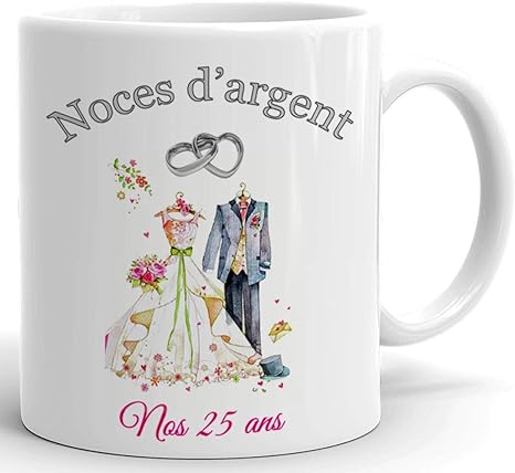 Tasse Mug Cadeau Anniversaire 25 Ans De Mariage Noce D Argent Original Amour Couple Romantique Amazon Fr Cuisine Maison