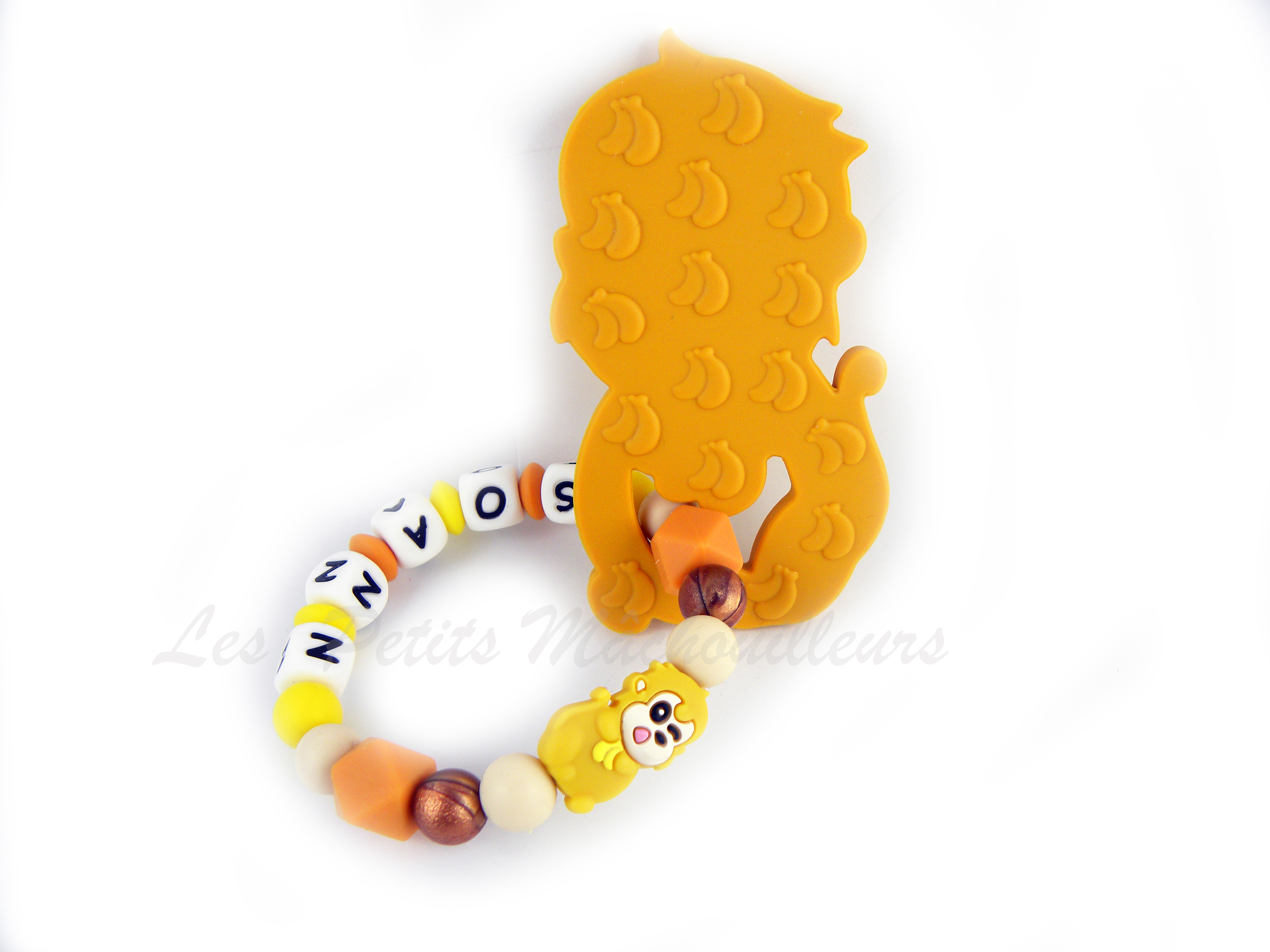 Hochet De Dentition Singe Moutarde Anneau De Denitition Singe Personnalise Les Petits Machouilleurs