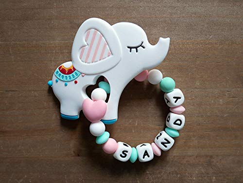 Hochet De Dentition Personnalise Fille 100 Silicone Jouet De Dentition Elephant Sucettes Et Anneaux De Dentition Produits Handmade