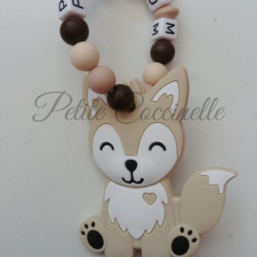Hochet De Dentition Renard Blanc En Perles En Silicone Personnalise Avec Le Prenom De Bebe Produits Handmade Anneaux De Dentition