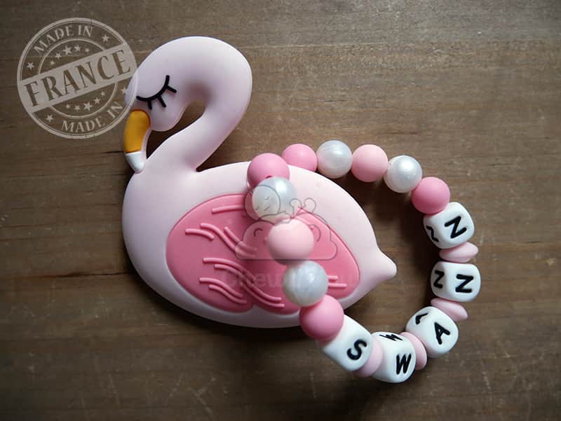 Hochet De Dentition Personnalise Cygne Coloris Au Choix Chewbidou