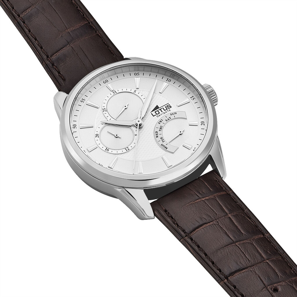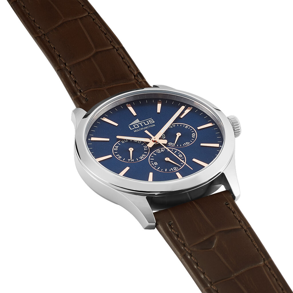 Montre Lotus Homme Multifonction Acier Cuir Marron 5 Gperdumes Aiguilles Com