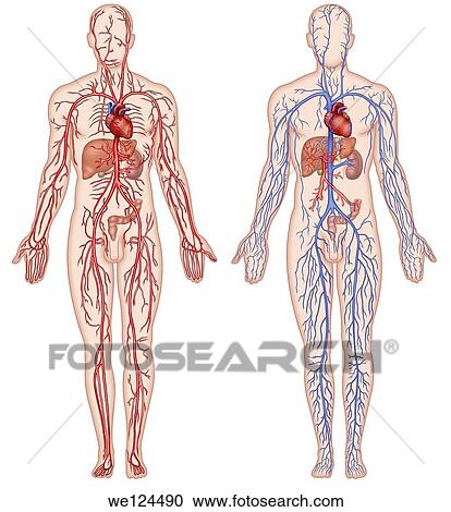 Illustration De Deux Schematique Figure Humaine Projection Les Principal Veines Et Arteres Cela Course Par Les Corps Humain Ceci Est Appele Sanguine Et Cardio Vasculaire System Banque D Image We Fotosearch