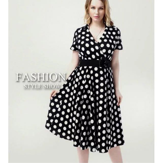 Mode Vintage Polka Dot Robe Femme Europeen Manche Courte Ceinture Design Milieu Longue Robe D Ete Grande Taille Robe Noir Achat Vente Robe Soldes Sur Cdiscount Des Le Janvier Cdiscount
