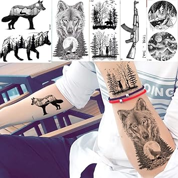 Hommes Mode Noir Tatouage Autocollants Petit Pic Loup Tatouage Temporaire Femmes Art Peinture Avant Bras Etanche Tatouages Lune 5 Pcs Amazon Fr Beaute Et Parfum