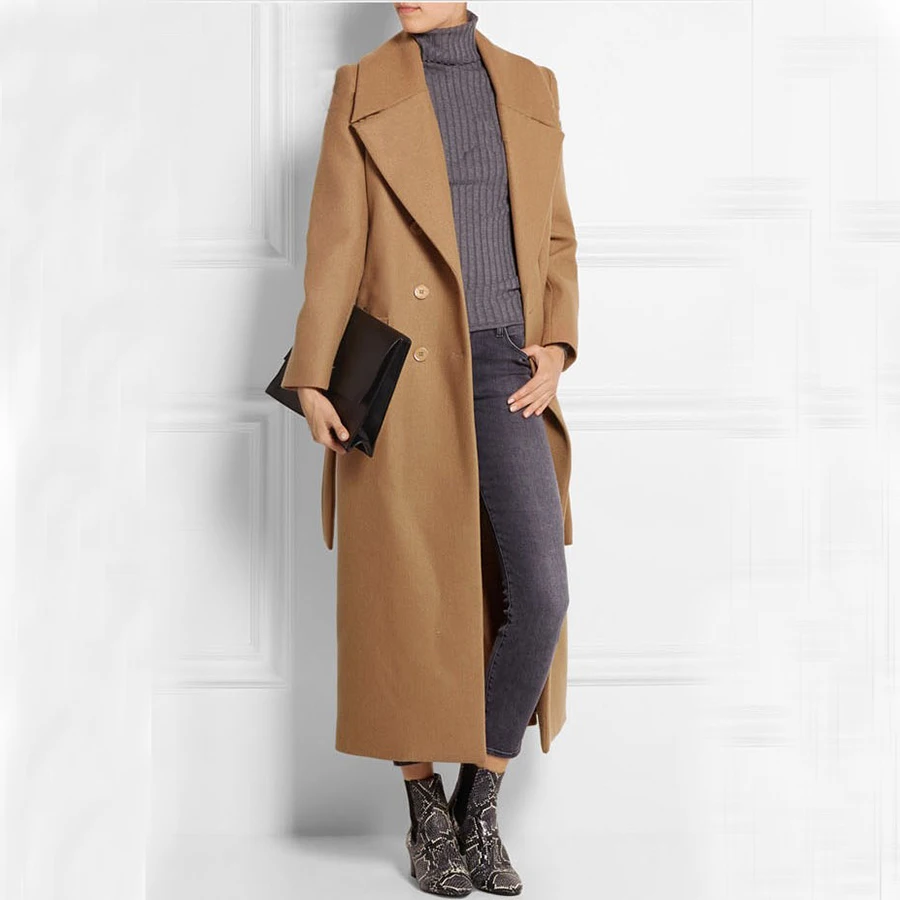 Must Have Mode Ultra Longue Double Boutonnage Femmes Veste En Laine Manteau De Laine Tendance Camel Extra Long Aliexpress