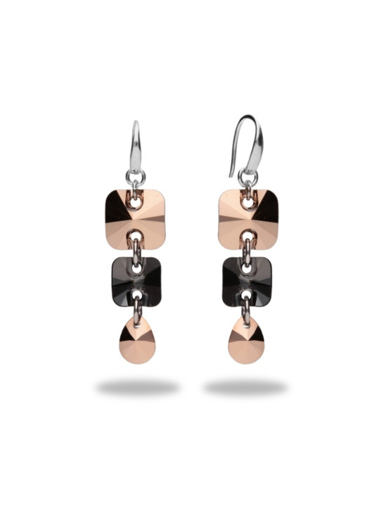 Boucles D Oreilles Spark Argent Et Cristaux De Swarovski Roses Et Noirs