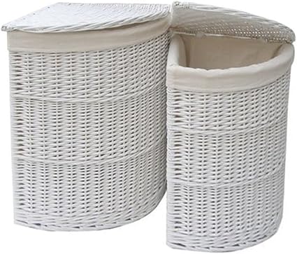 Funkybuys Panier A Linge D Angle En Osier Doublure En Tissu Blanc Amazon Fr Cuisine Maison