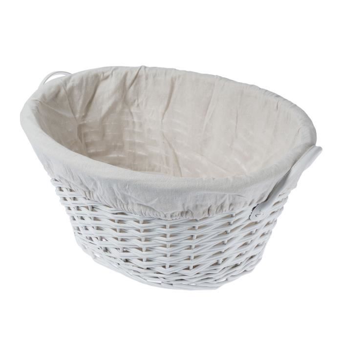 Panier Ovale En Osier Blanc Et Doublure En Tissu Blanc Achat Vente Panier A Linge Panier Ovale En Osier Blanc Cdiscount