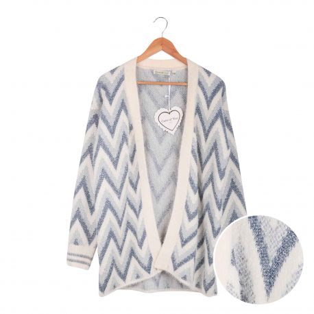 Gilet Long Manches Longues Laine Metallise Chevron Femme Care Of You