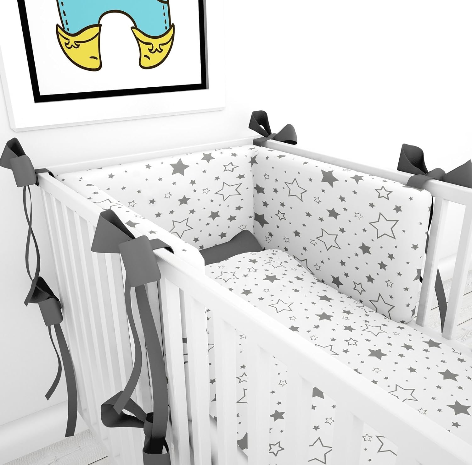 Linge de maison Carré Blanc Accessoires puériculture Bébé Soldes jusqu’à 50% livraison offerte !. Cet ensemble pour lit bébé comprend Un tour de lit bébé blanc à pois noirs décoré de 2 coeurs brodés Le tour de lit est 100% coton et respirant Dimensions 360 x 35 cm une partie de 60 x 28 cm pour les lits bébé de 70 x 140 cm Une gigoteuse blanche à pois noirs 0/6 mois (longueur 70 cm) Textiles certifiés respirants et antiallergies. Tour de lit bebe garcon – contour lit bebe respirant coton (Gris et blanc avec des étoiles, 180 x 30 cm) 1370 € (Prix au 26/01/21 02 ) Product prices and availability are accurate as of the date/time indicated and are subject to change.