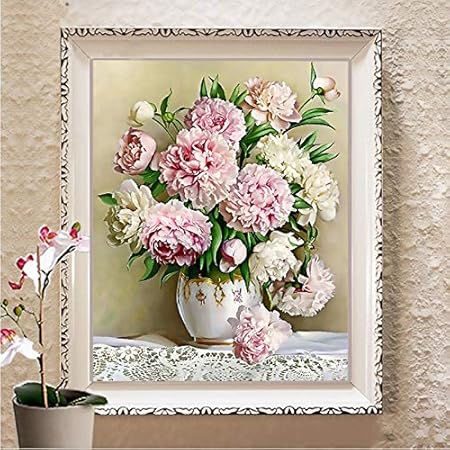 Broderie Fleurs Modele Peinture Bricolage Dmc Vase Pivoine Sur Le Tissu Point De Croix Broderie Ensembles For Kits Chinois Point De Croix Size 11ct Silk 62x80cm Amazon Fr Cuisine Maison