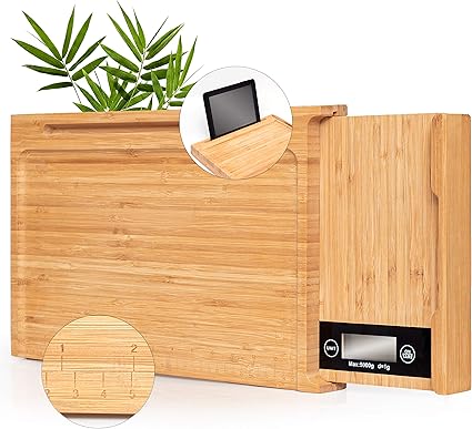 Planche A Decouper En Bambou Avec Balance De Cuisine Numerique Support Pour Tablette Ipad Regle Planche En Bois 4 En 1 Innovante Planche A Decouper En Bois Naturel Sans Plastique