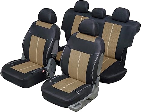 Housse Siege Semi Cuir Universel Noir Et Beige Pour Voiture Housses De Siege Housses De Siege De Voiture Housse Siege Auto