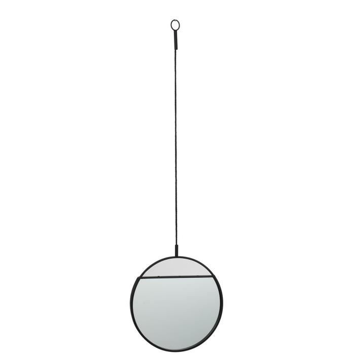 Miroir Mural Rond Metal Laniere Simili Noir Round