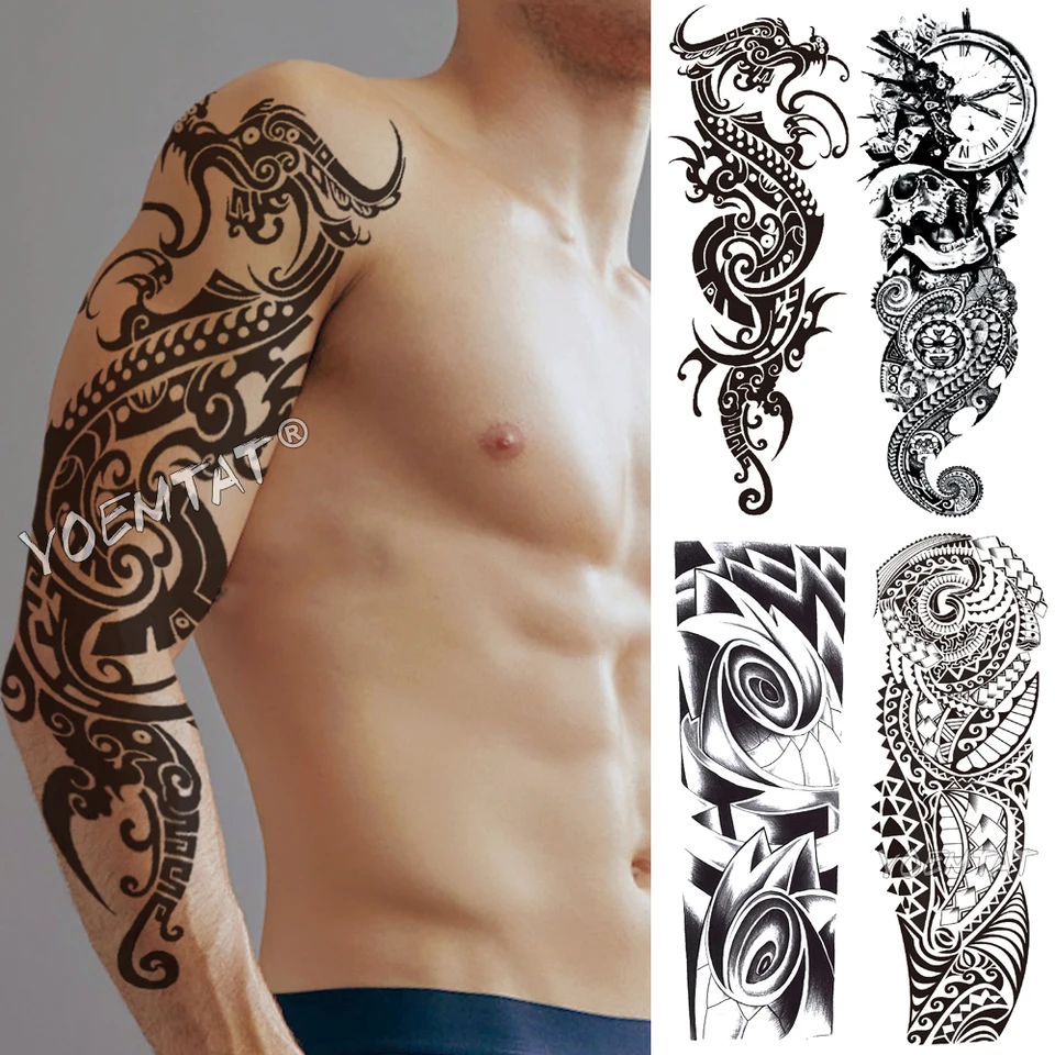 Grand Bras Manches Tatouage Maori Dragon Flamme Impermeable Temporaire Tatoo Autocollant Crane Majeste Hommes Femmes Totem Complet Tatto Aliexpress