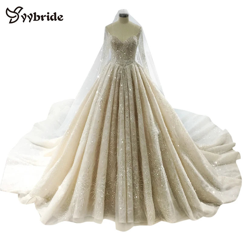 Yybride Robe De Mariage Luxueuse En Dentelle Et Cristaux Robes De Mariage Originales Col En V Bretelles Spaghetti Bling Cathedrale Ou Train Royal Nouvelle Collection Aliexpress