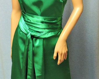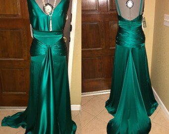 Green Satin V Neck Open Back Celebrity Prom Dress Promfy