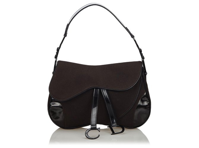 Dior Dior Black Canvas Lined Saddle Handbags Leather Patent Leather Cloth Cloth Black Ref Joli Closet