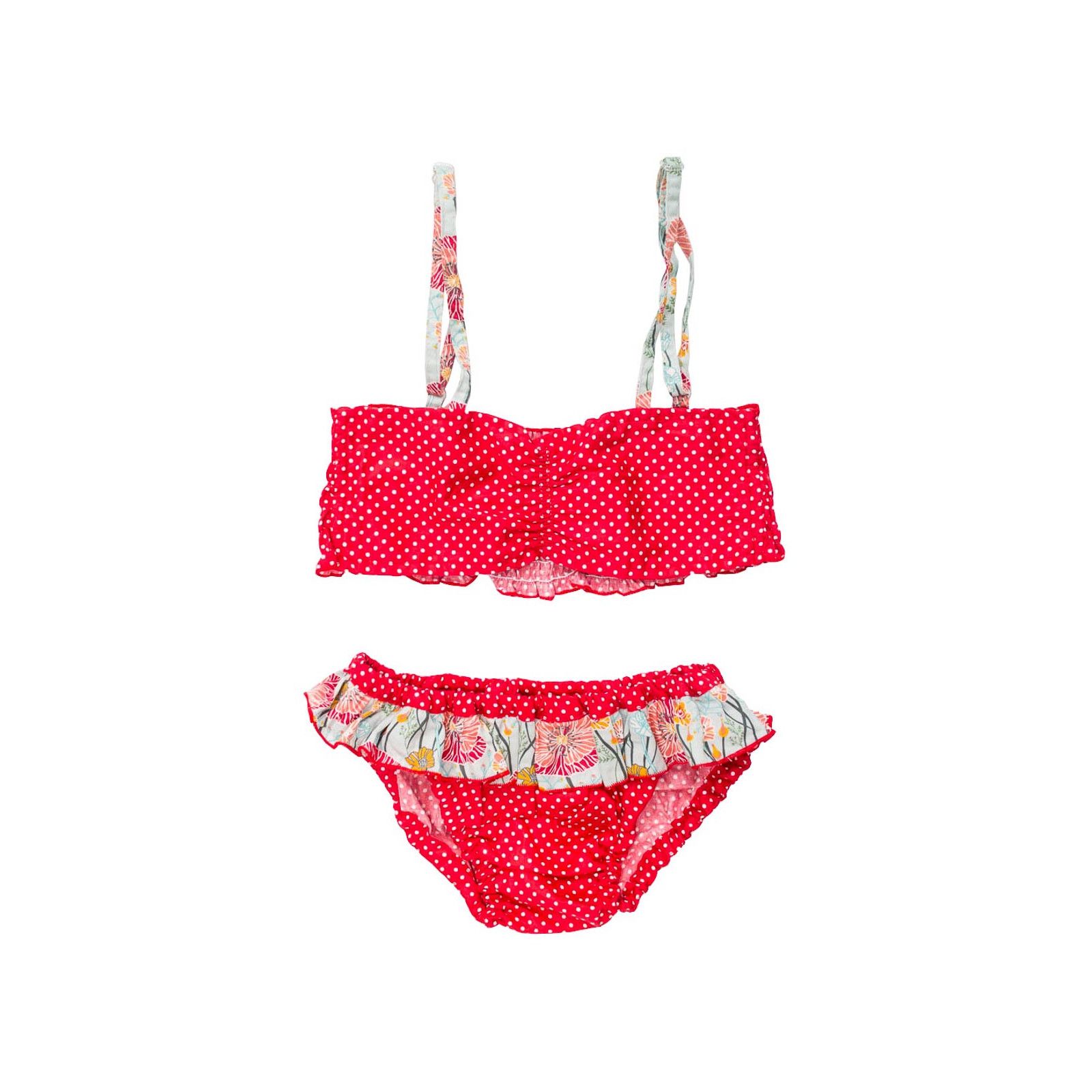 Bikini Maillot De Bain Coton Fille 4 10 Ans Rouge A Pois Et Coquelicot