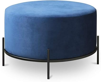 Lifa Living Pouf Salon Rond Repose Pied En Velours Bleu Et Bordure En Metal Noir Tabouret Design 35 X O55 Cm Amazon Fr Cuisine Maison
