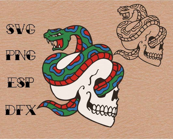 Old School Tattoo Death Skull Snake 001 Vector Svg Etsy